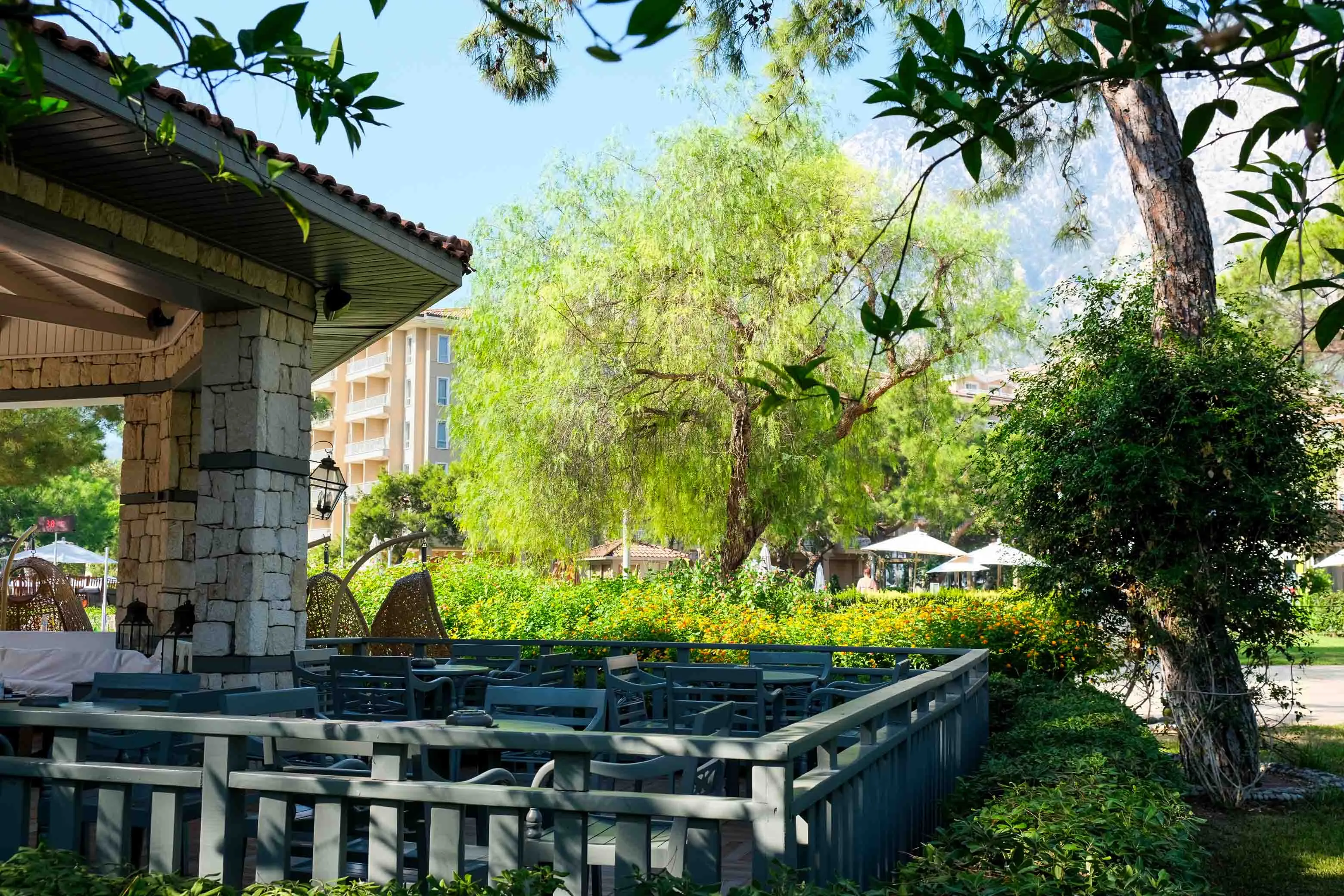 Wir haben einen angenehmen Bereich geschaffen, in dem Sie während eines unterhaltsamen Urlaubs in den Sommermonaten in unserem Hotel sich jederzeit in eine friedliche Ecke zurückziehen und Ihren Kaffee genießen können.